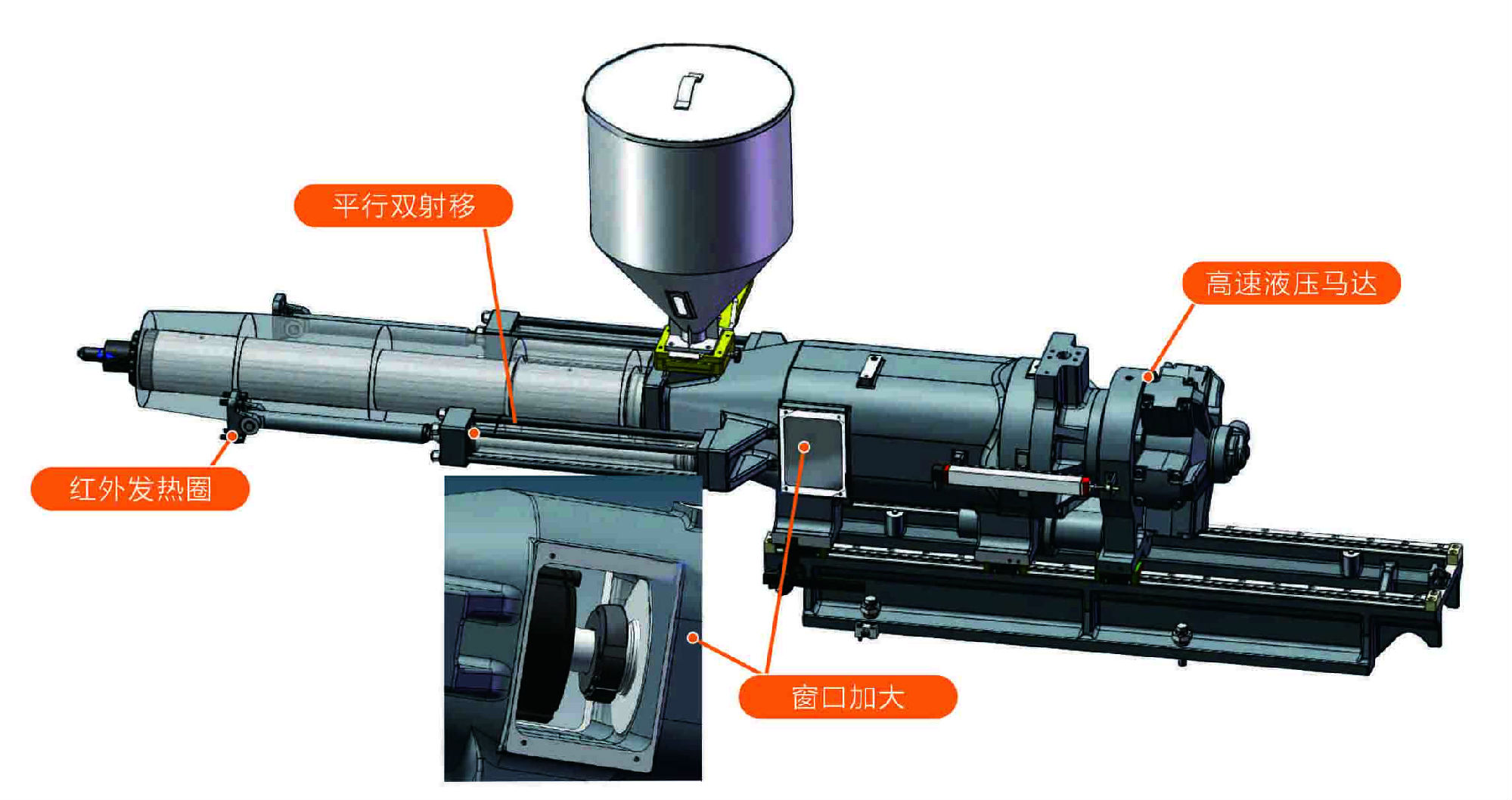 配合薄壁包裝模具要求,進一步加強鎖模機構剛性。